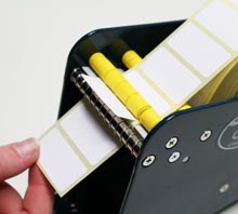 Das Ende der Etikettenrollen ist jetzt unterhalb der beiden Walzen für Sie griffbereit.