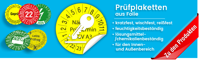 Eine Grundplakette ist ein Etikett, auf dem eine Prüfplakette angebracht werden kann. Es bietet Raum für zusätzliche Informationen, die auf der Prüfplakette selbst keinen Platz finden. Gerade bei der Verwendung von Prüfplaketten mit Jahreszahl oder allgemeinem Aufdruck, bietet sich die Verwendung einer Grundplakette an. So können die Art der Prüfung, der Prüfverantwortliche und weitere wichtige Informationen hinzugefügt werden – ohne eine eigene Prüfplakette für diese spezielle Kontrolle verwenden zu müssen. Besonders, wenn Sie viele verschiedene Betriebsmittel auf unterschiedliche Weise überprüfen müssen, lohnt sich die Verwendung von Grundplaketten und bietet eine sinnvolle Erweiterung Ihrer Betriebsmittelkennzeichnung.